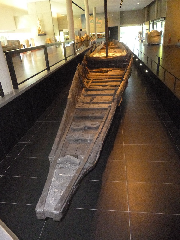 Nous clôturons notre saison romaine par le musée de l’Arles antique, édifié dans un style résolument contemporain dans l’axe du cirque romain. Ce musée a été construit pour abriter les trésors de l’Antiquité mais aussi pour montrer tout ce que le Rhône avait conservé le long des quais de Trinquetaille. Il renferme le buste de César (ouvrez un album d’Astérix, cherchez-y Jules et vous avez devant vous un visage que vous reconnaîtrez au musée !), le chaland antique (sorti entier des eaux du Rhône), des sculptures, de splendides mosaïques polychromes et une riche collection de sarcophages.